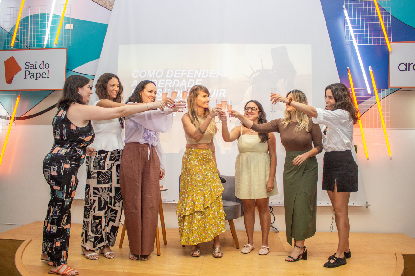 The event included a lively Q&A session, where the audience asked questions about democracy, defending liberal ideas in public debates, and strategies to stay resilient in the face of censorship and societal pressures. The discussion was sharp, thoughtful, and full of practical insights, offering attendees a clear vision of how to stand up for freedom without losing themselves in the process. The evening concluded with a toast, celebrating not only the book launch but also the growing community of women committed to defending liberty in Brazil.